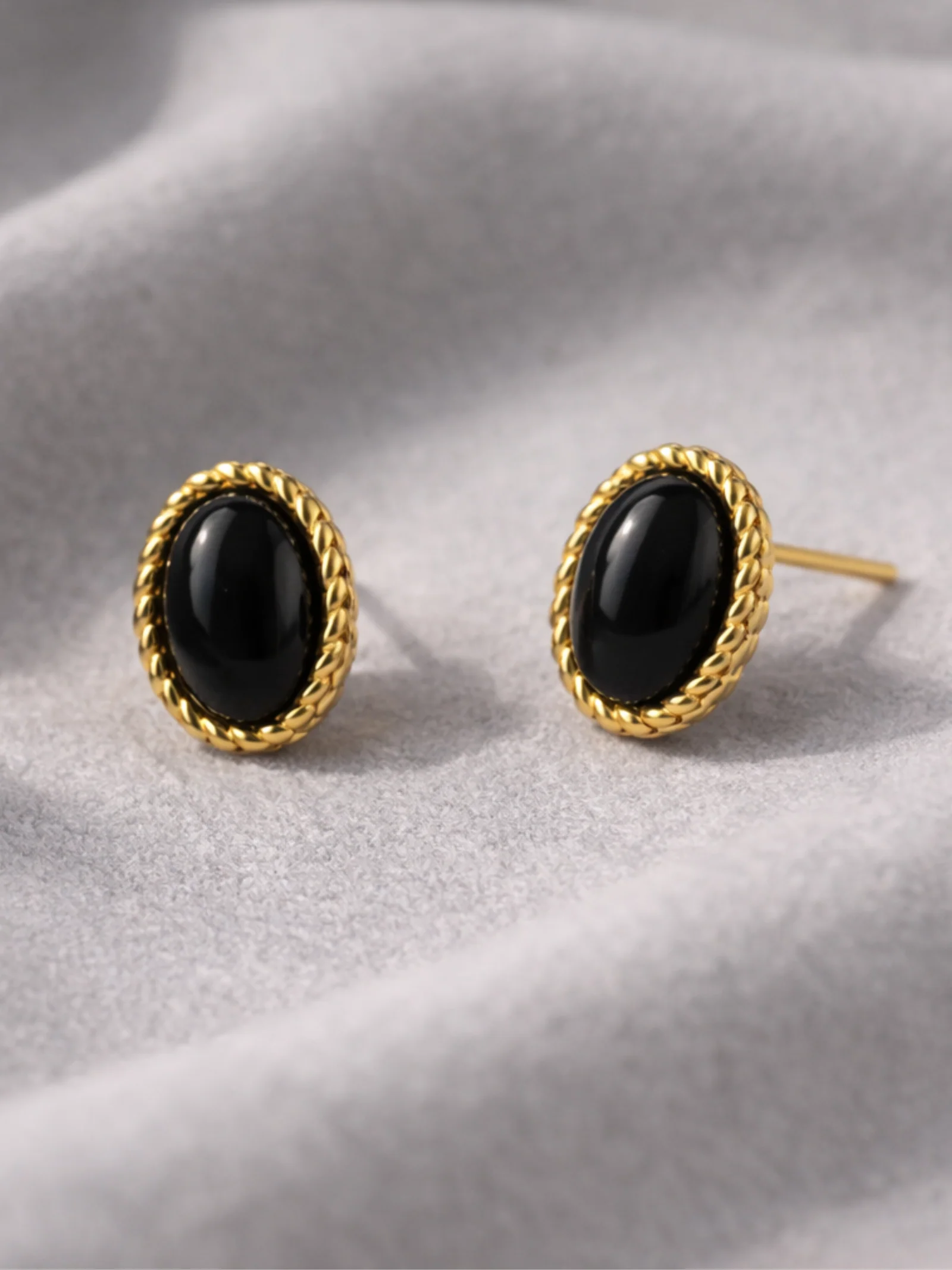 True confidence doesn’t need to shout. The Verona Black Onyx Stud Earrings are a tribute to timeless refinement and inner strength. Featuring a deep, polished onyx-style center, these studs offer a grounding presence that feels both bold and understated.
